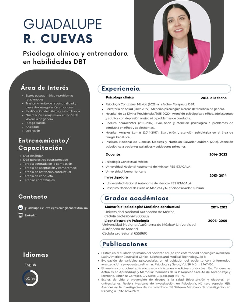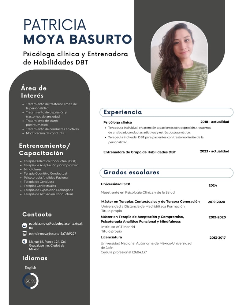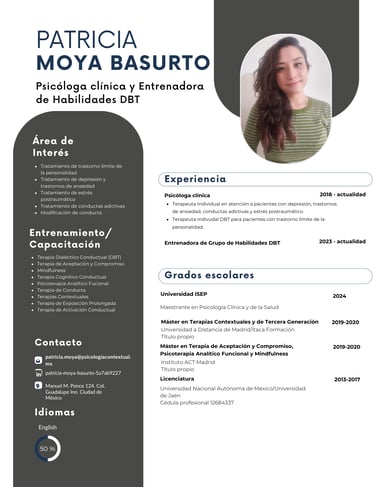En Psicología Contextual México contamos con un equipo multidisciplinario de profesionales de la salud mental comprometidos con la práctica clínica basada en evidencia científica y el desarrollo continuo de habilidades terapéuticas.